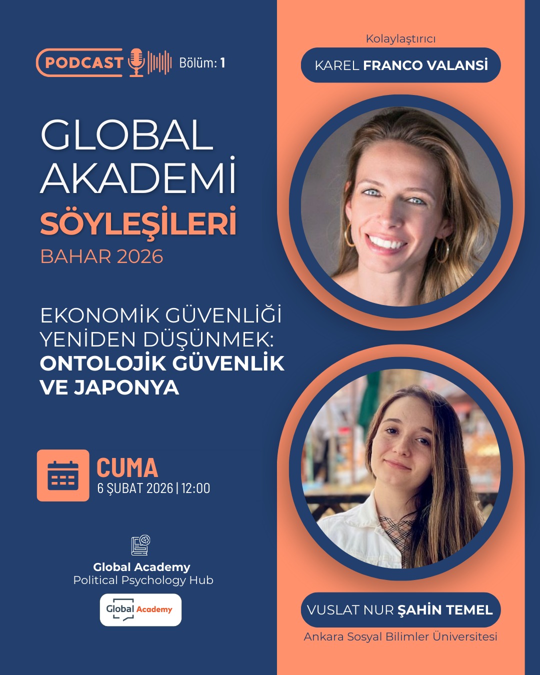 Global Akademi söyleşilerinin Bahar 2026 dönemindeki ilk podcasti, Dr. Karel Valansi’nin kolaylaştırıcılığında gerçekleşti. Bu bölümde Dr. Vuslat Nur Şahin Temel, “Ekonomik Güvenliği Yeniden Düşünmek: Ontolojik Güvenlik ve Japonya” konulu çalışmasını anlattı. Podcasti dinlemek için: