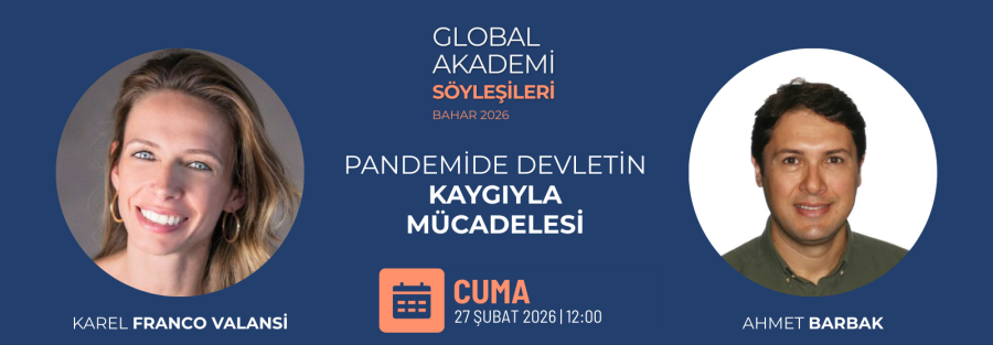 Global Akademi Konuşmaları Seminerler Şubat 26, 2026 Global Akademi söyleşilerinin Bahar 2026 dönemindeki dördüncü podcasti, Dr. Karel Valansi’nin kolaylaştırıcılığında gerçekleşti. Bu bölümde Dr. Ahmet Barbak, “Pandemide Devletin Kaygıyla Mücadelesi” konusunu ele aldı. Podcasti dinlemek için: Önceki bölüm Sonraki Bölüm
